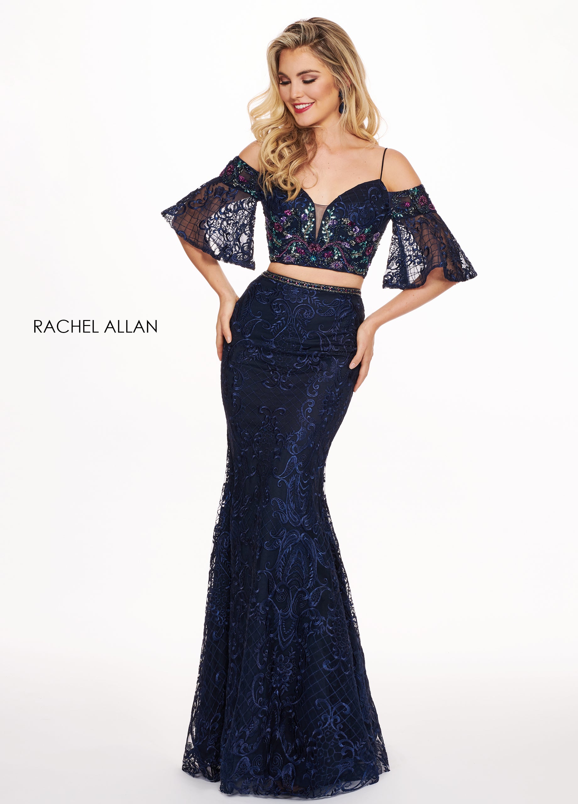 Boho-inspired dresses are our favorite type to wear for prom. This is a two-piece that has an off-the-shoulder top with lace and multi-colored embroidery. While the skirt itself is made of all lace, this is a pretty prom style that you will want to wear for your big event.