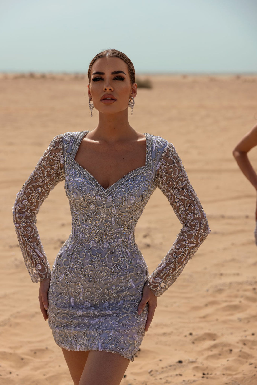 Form fitting and fabulous is this tulle mermaid. Made with a trendy beading pattern and hugging silhouette, you'll be rocking your prom in the latest and greatest formalwear trend.