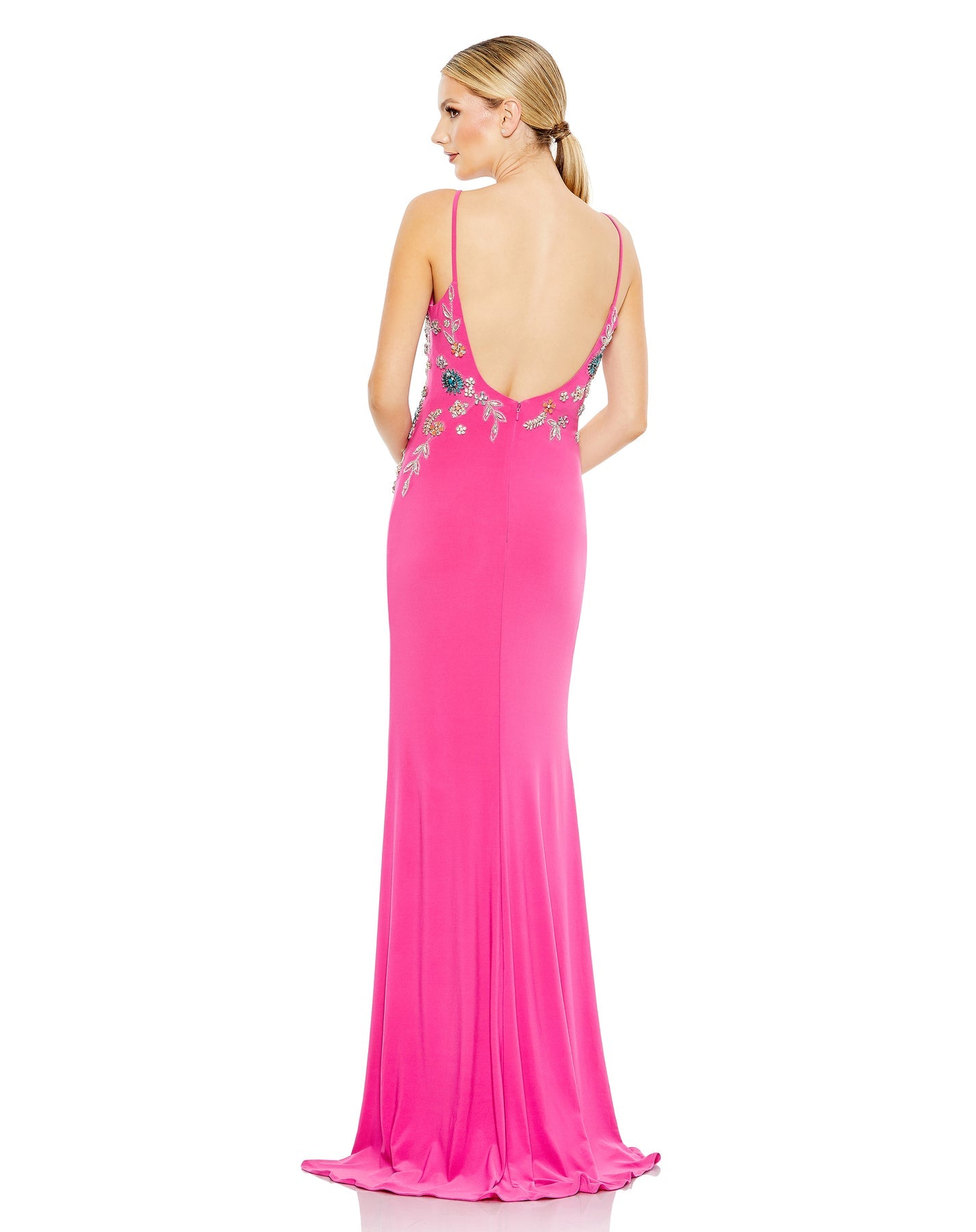 Walk the pageant stage in this breathtaking pleated, chiffon gown. This sheer neckline combined with the delicate hand beaded bodice is everything and more. We added a chiffon cape draping from both sides of the cap sleeve leaving the crowd in awe.