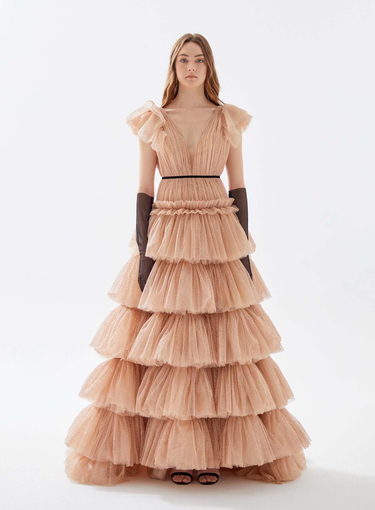 Layer up your night in this waterfall hi-low dress made of soft tulle and gorgeous beading at the waistline. With these vibrant colors you'll be the talk of the town.