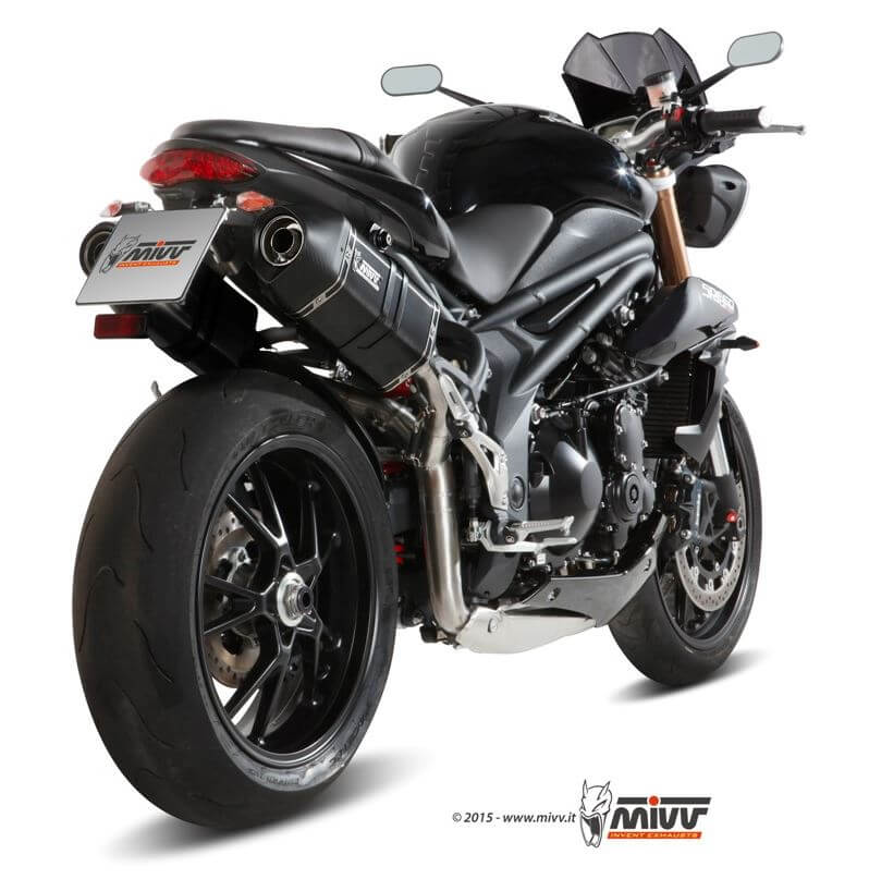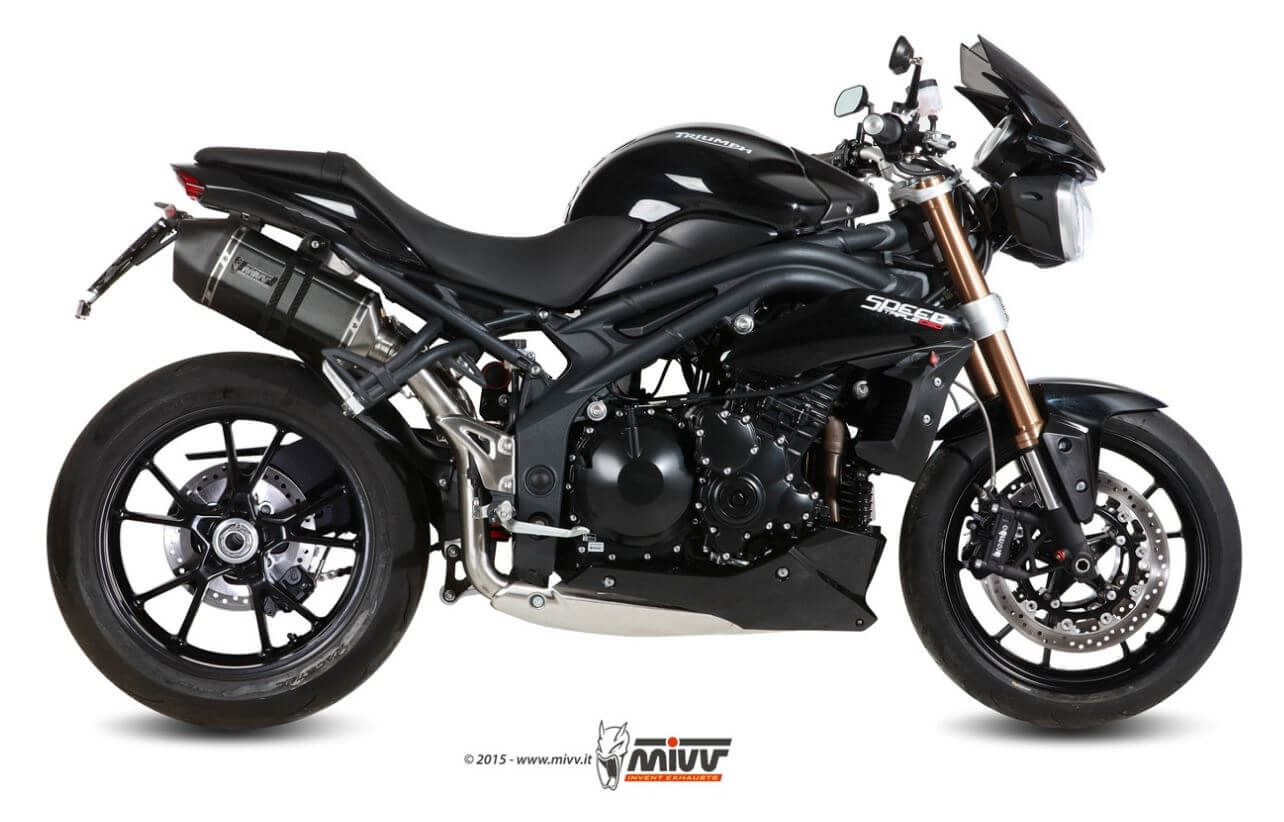 MIVV Speed Edge Black Stainless Steel Slip-On Exhaust '11-'15 Triumph Speed Triple 1050 R/S/RS