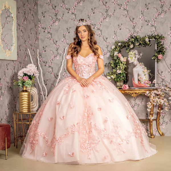 Hannah Gown is a beautiful, off-shoulder ball gown with organza floral applique & couture beading that whimsically flows down from the bodice to skirt. In the softest blush shade, the gown is both sweet & sensual. The hidden leg opening and flatteringly deep sweetheart neckline perfectly modernize a classic silhouette.