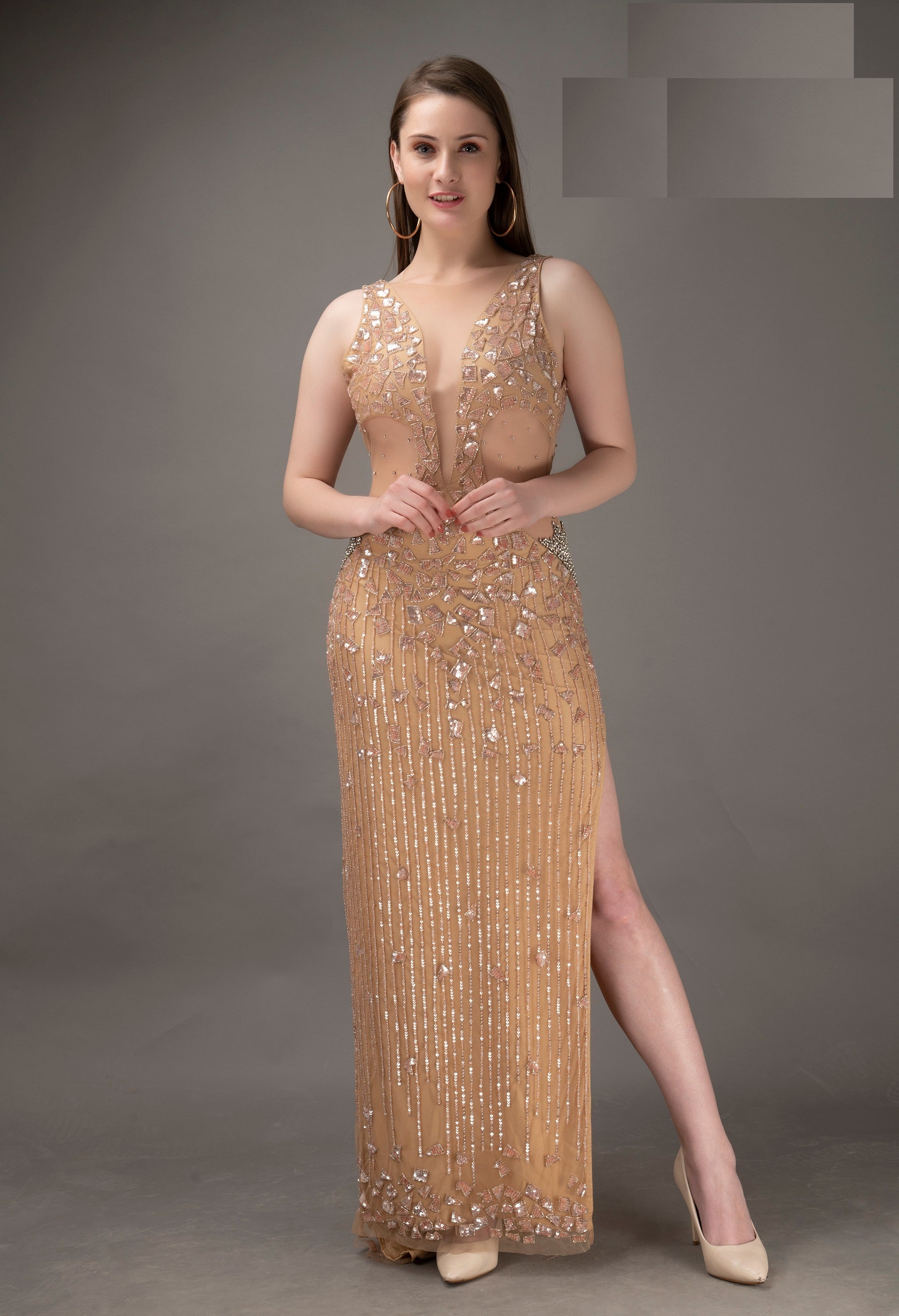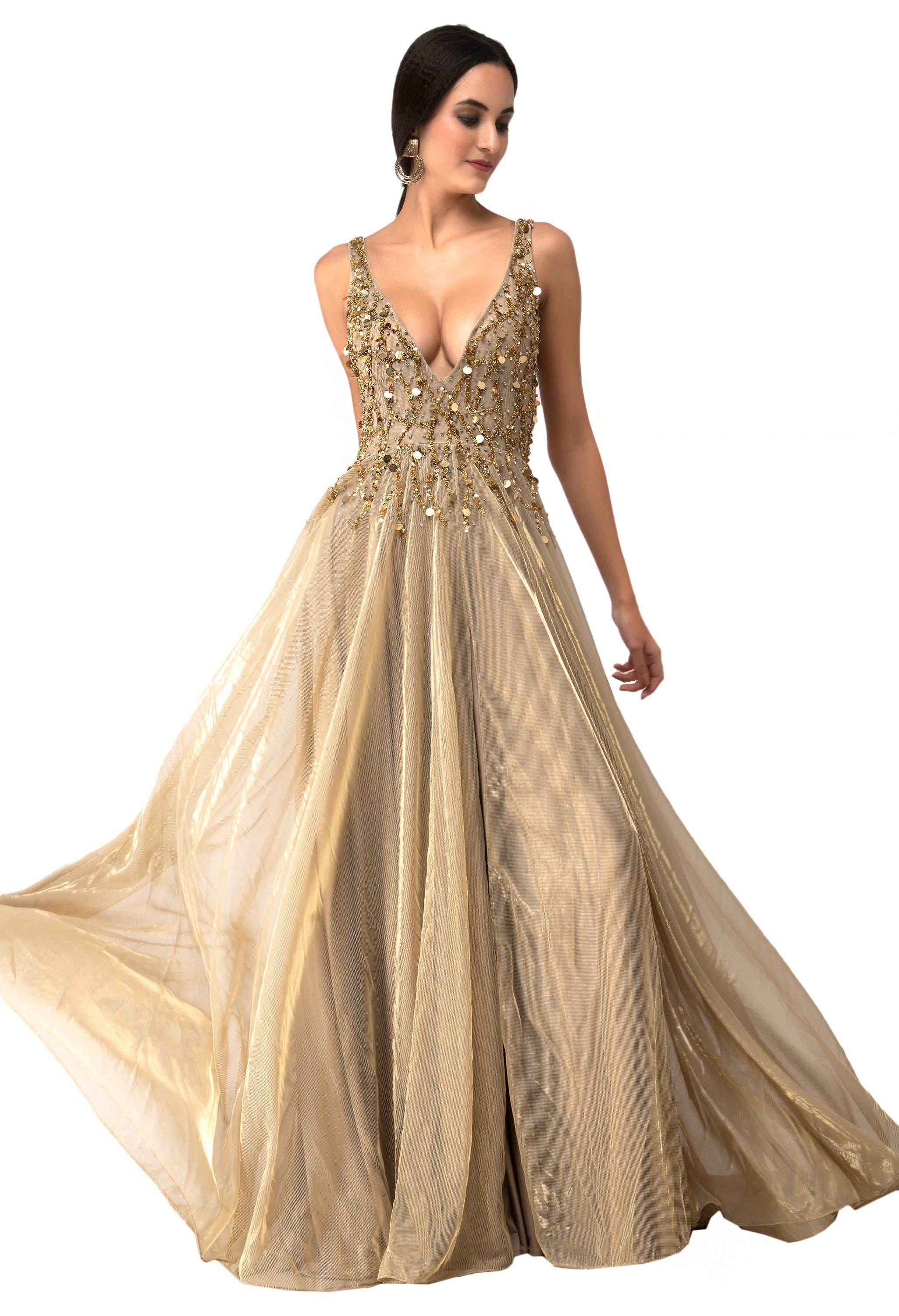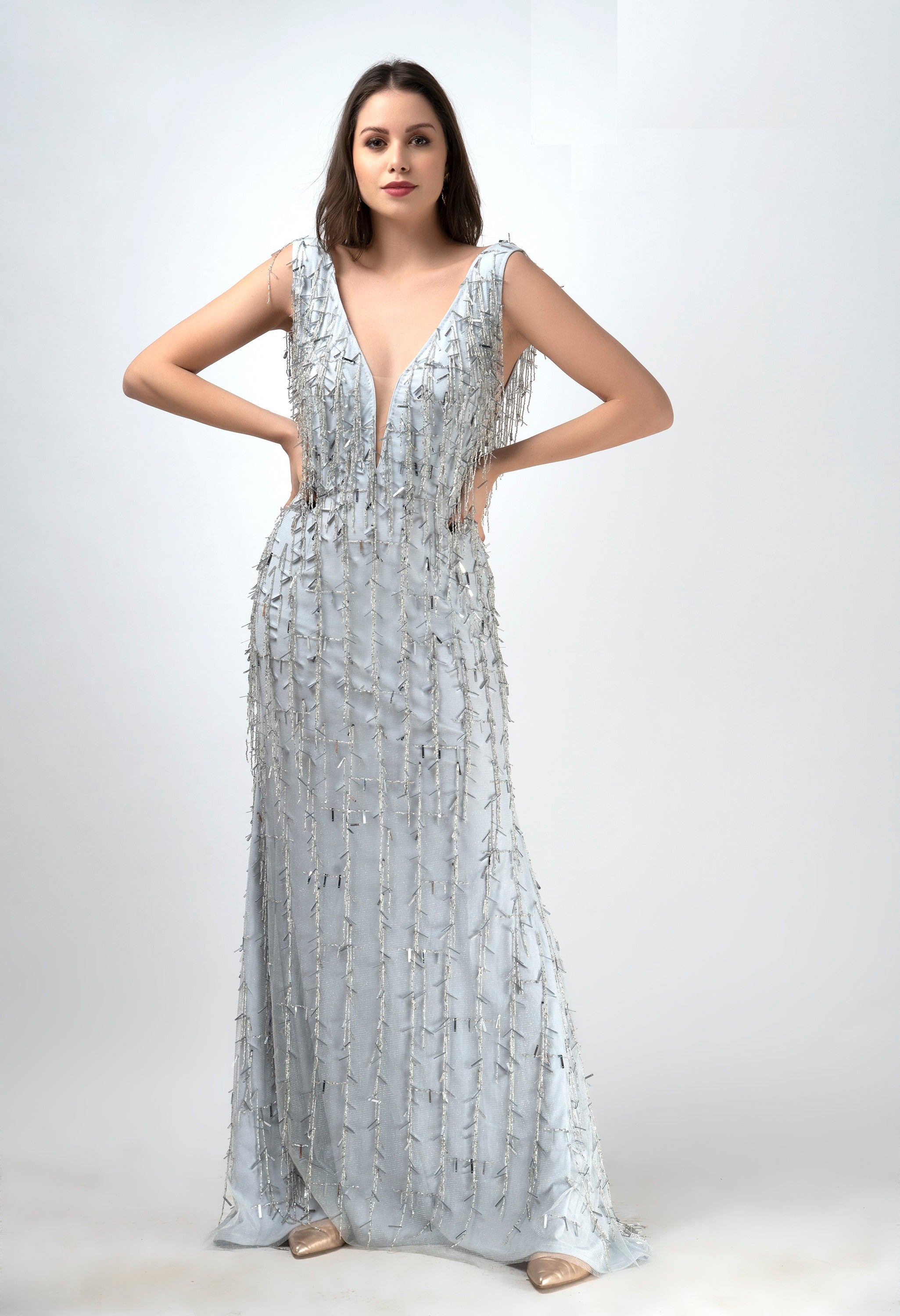 V-NECK FITTED LONG PAGEANT DRESSES IN BLACK COLOR