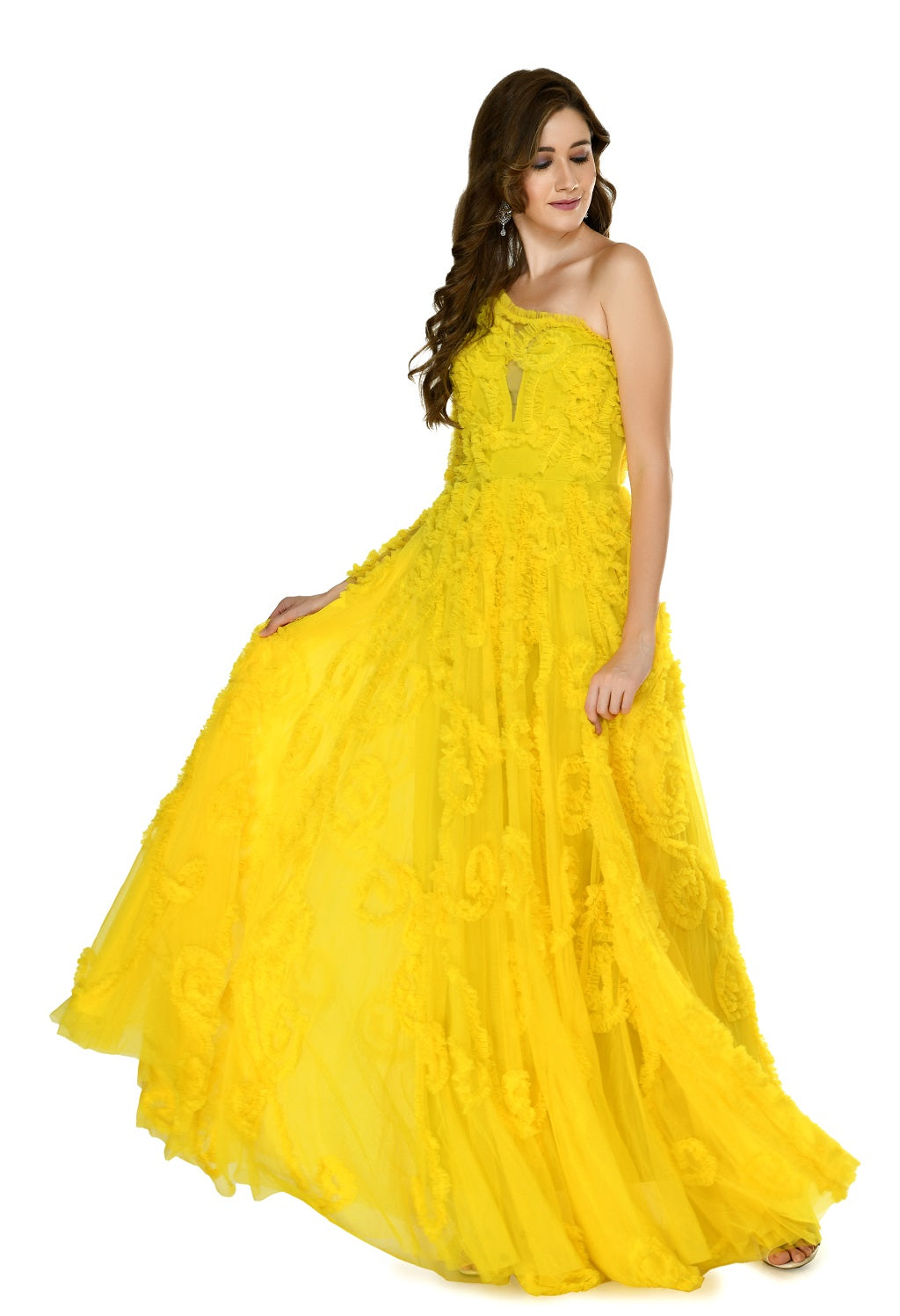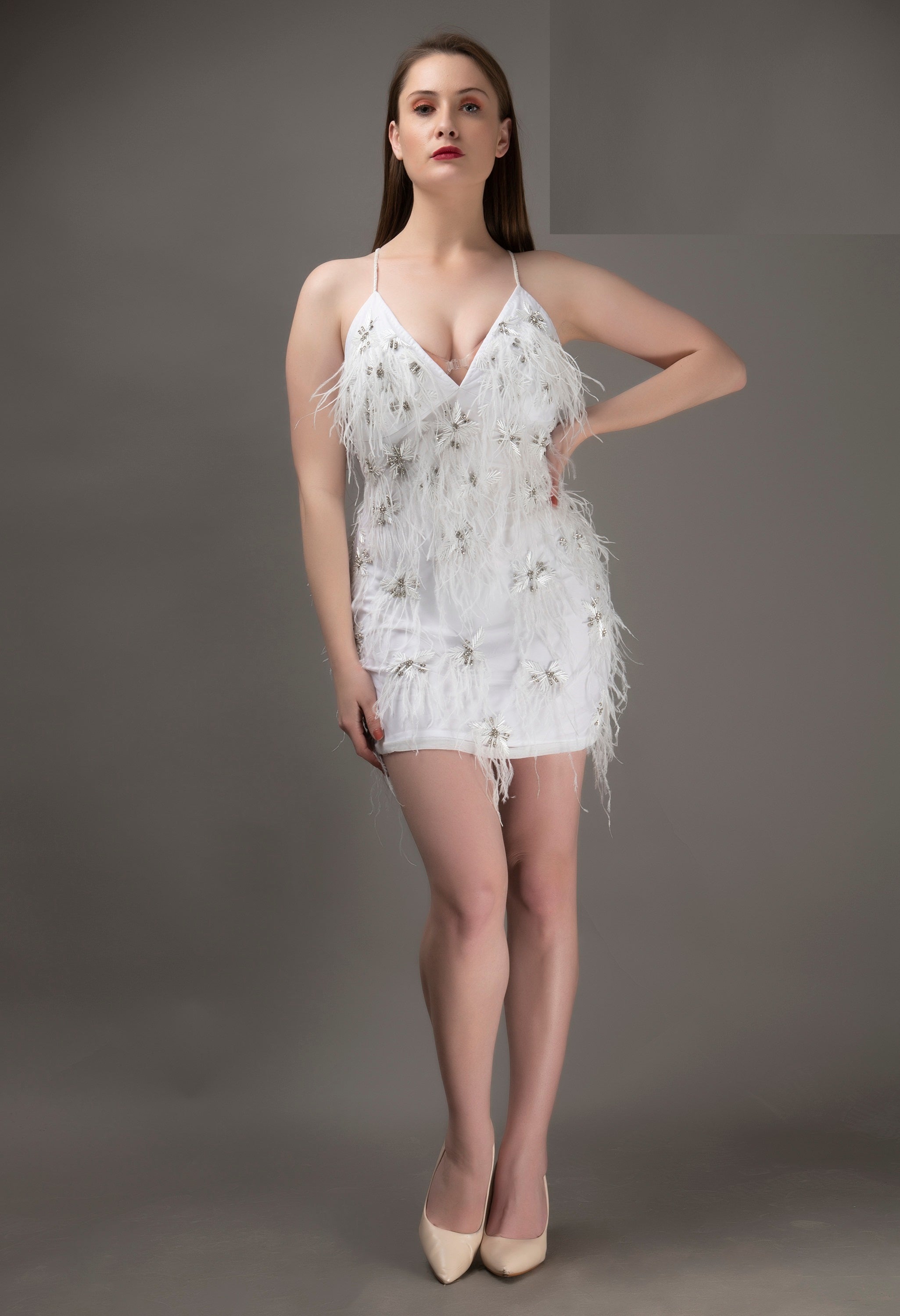 WOW! This head to toe velvet pageant gown is all the rage. Designed with a v-neckline, this stunner will show off its beaded straps and back bodice. Finally, this gown finishes with a chiffon cape falling from the shoulders.