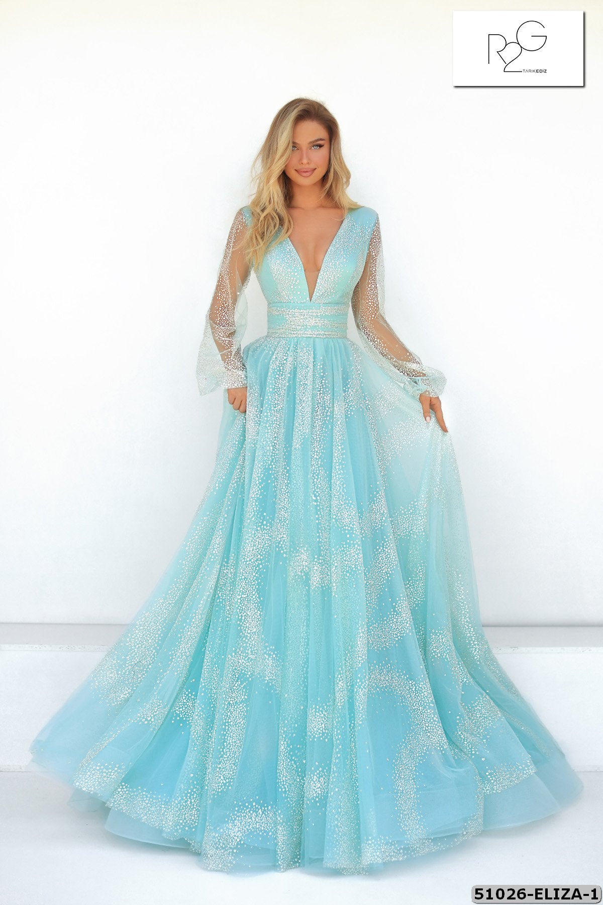 Feel glamorous in this Tarik Ediz 51026 evening dress. Revealing an embellished bodice with waist band to complement the look, this also shows a plunging V-neckline supported by long puff sleeves. The skirt highlights an A-line silhouette while its back shows a V-back with back zipper closure. Make it a moment to shine in this Tarik Ediz creation. Model is wearing Mint color.