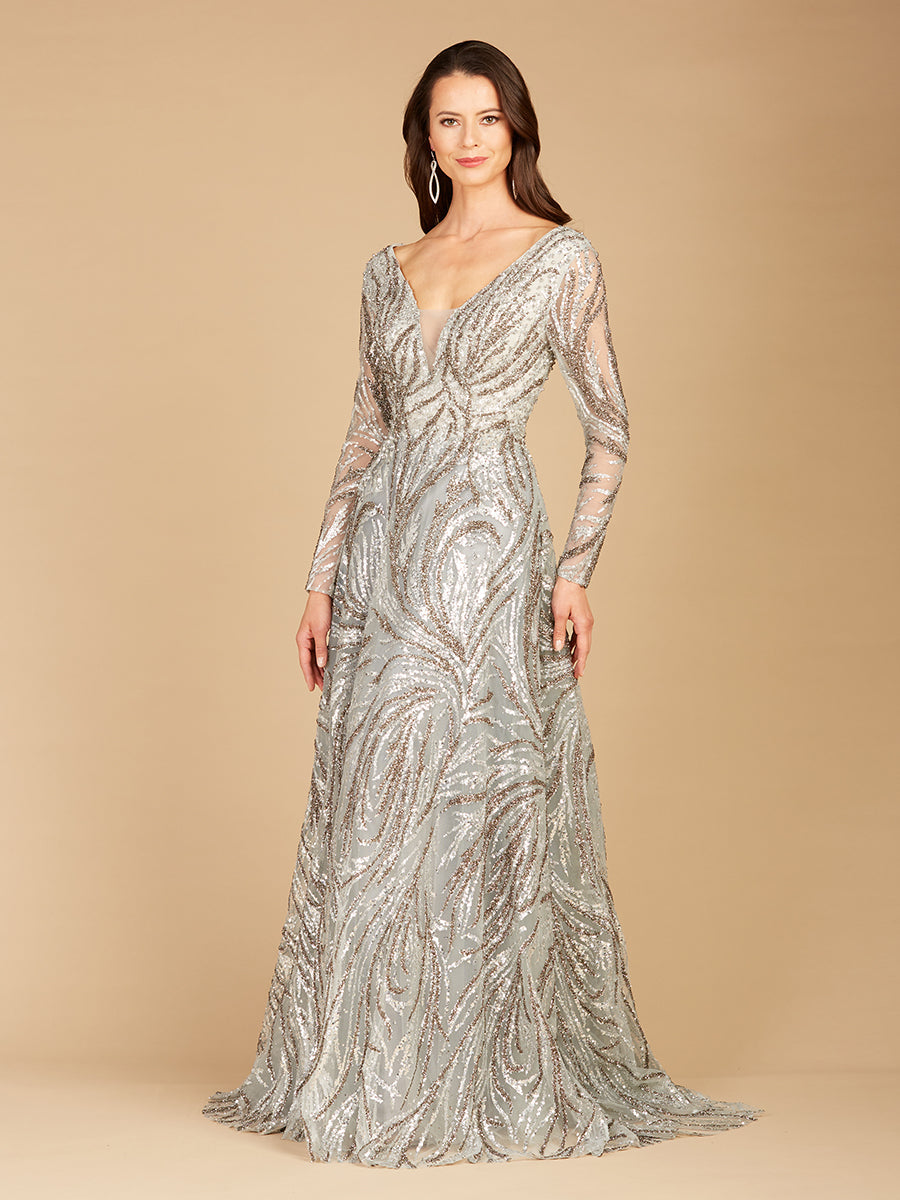 When the jumpsuit is calling your name…Say hello to your new favorite flared leg jumpsuit. This beaded tulle one piece has a lace-up back and a gorgeous tone-on-tone beading pattern.