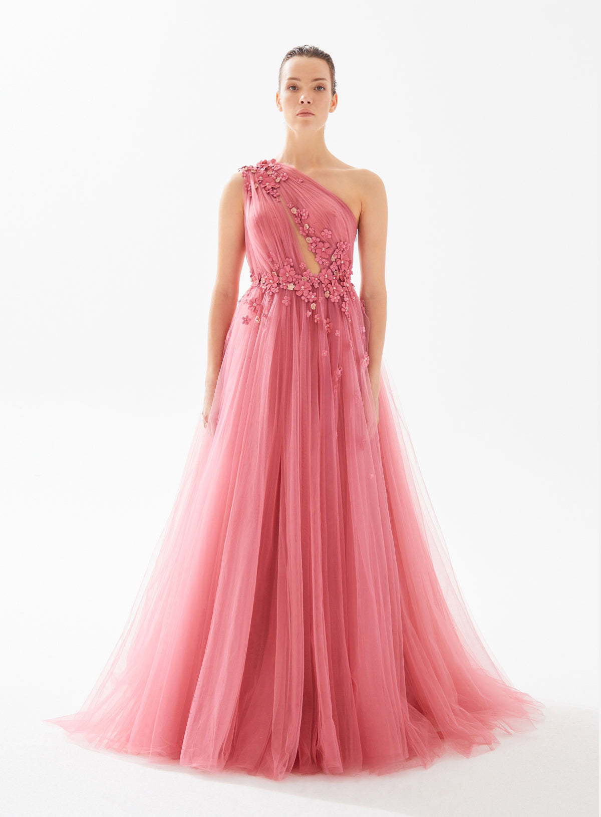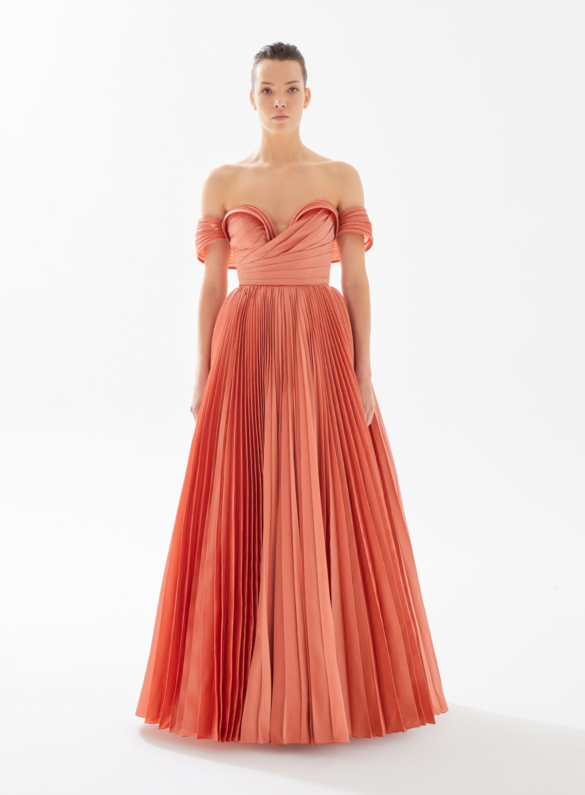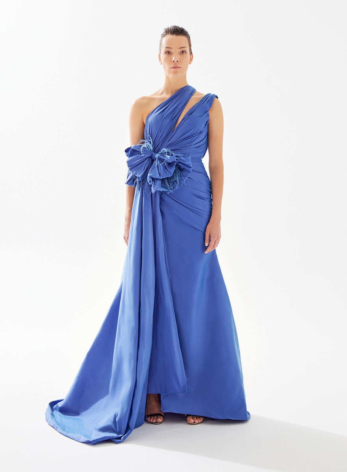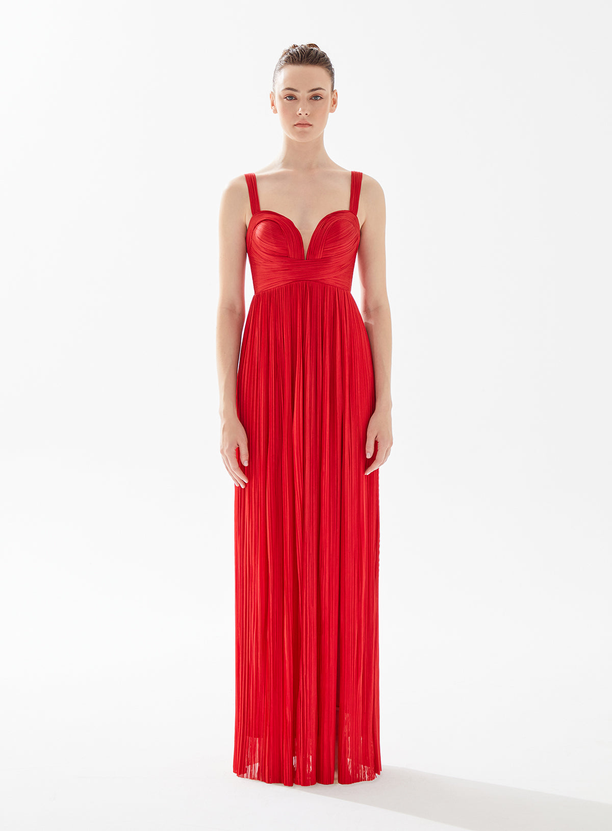 Everything good, everything magical happens in this sophisticated lycra jersey dress. This gown was crafted with a scoop neckline and beaded straps leading to a gorgeous strappy back. Finished off with an added jersey train falling from the beaded lower back.