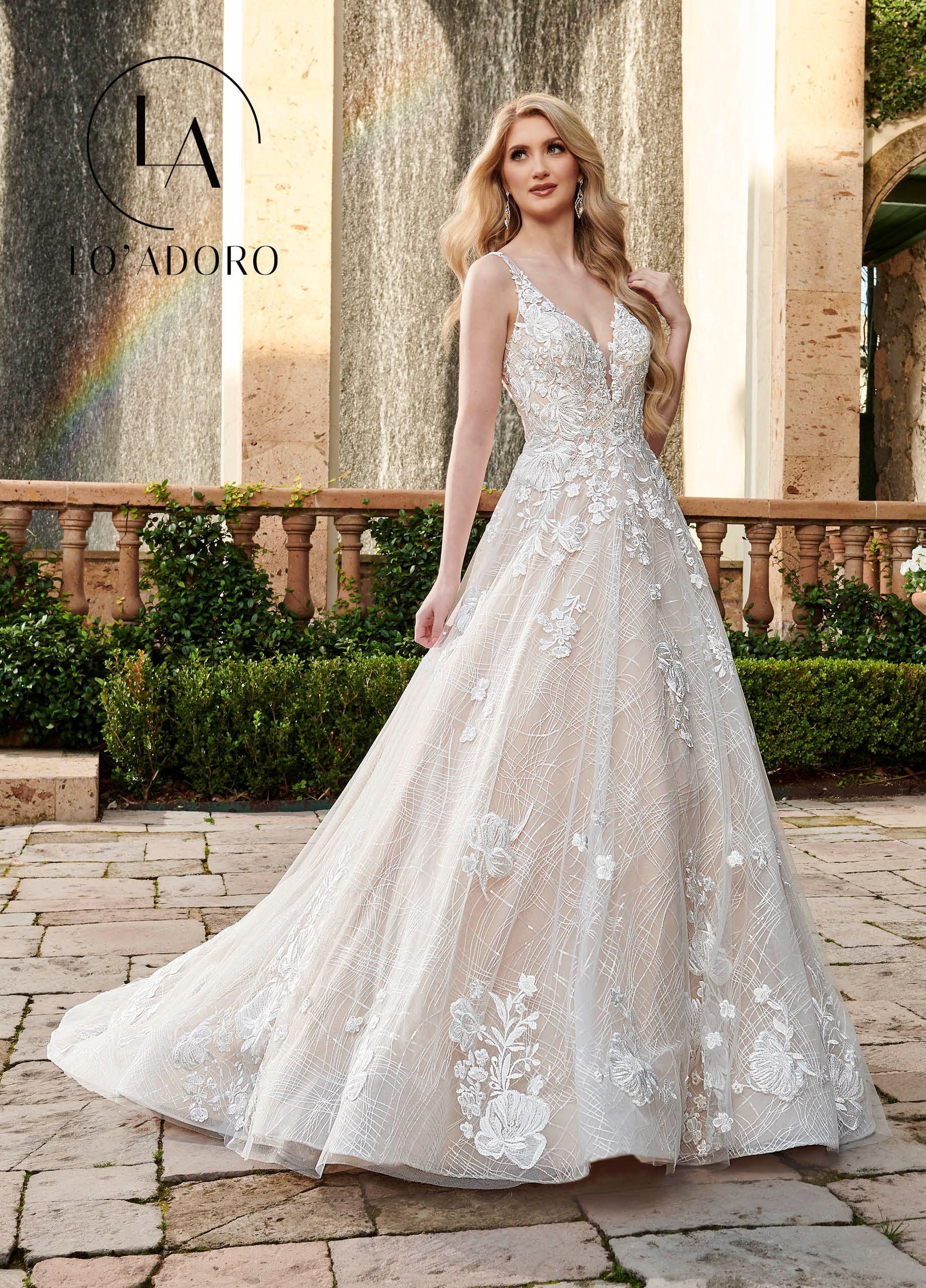 V-NECK A-LINE LO' ADORO BRIDAL IN IVORY COLOR