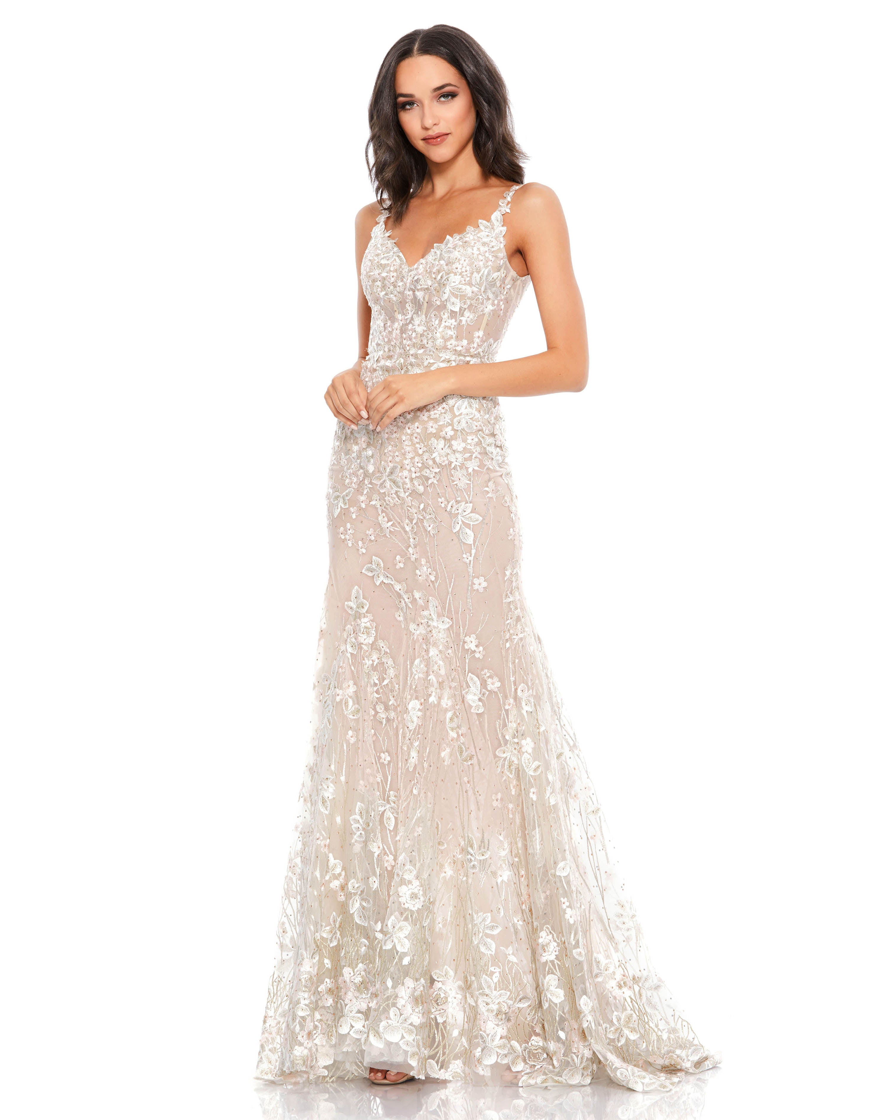 WHIMSICAL ORGANZA A-LINE WEDDING DRESS WITH A PLUNGING SWEETHEART NECKLINE, BEADED SPAGHETTI STRAPS AND A GLITTER TULLE OVERLAY. THE GOWN FEATURES SPARKLING CRYSTAL BEADING AND A MATCHING SHEER BACK BODICE. THE FULL ORGANZA SKIRT FINISHES WITH A CHAPEL LENGTH TRAIN AND KEYHOLE BACK. THE DETACHABLE MODESTY PANEL IS INCLUDED.