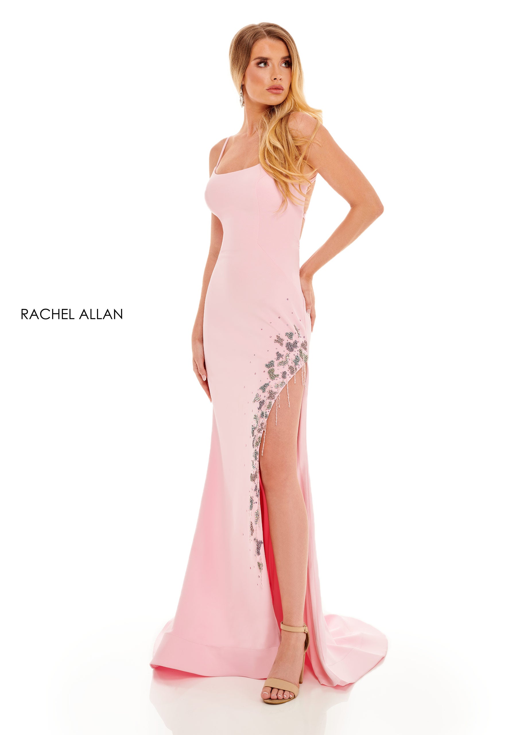 This perfect, welcoming suit-like dress will have judges in awe. Made from a triacetate fabrication and a deep plunging neckline, this interview piece will capture the heart of the judges. This dress finishes with long sleeves and double button exposure on the bodice.