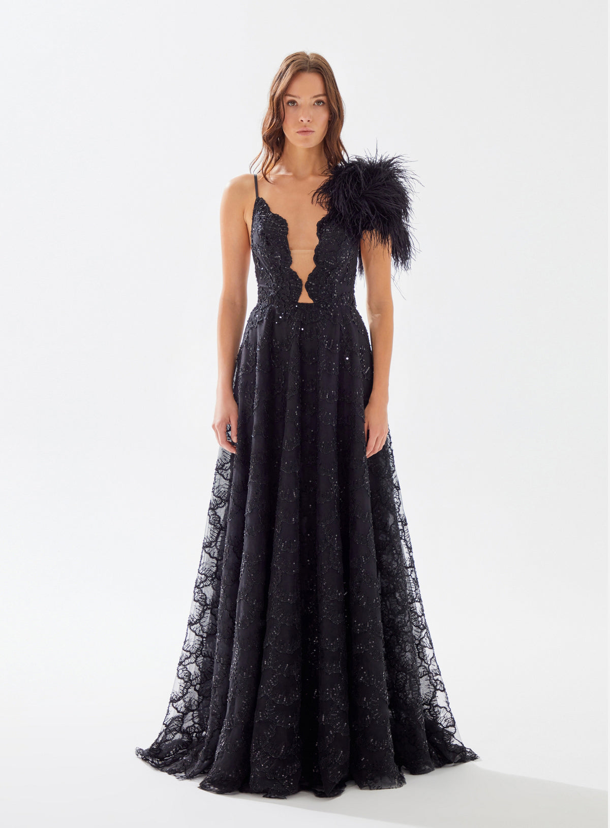 V-NECK FITTED LONG PROM DRESSES IN BLACK COLOR