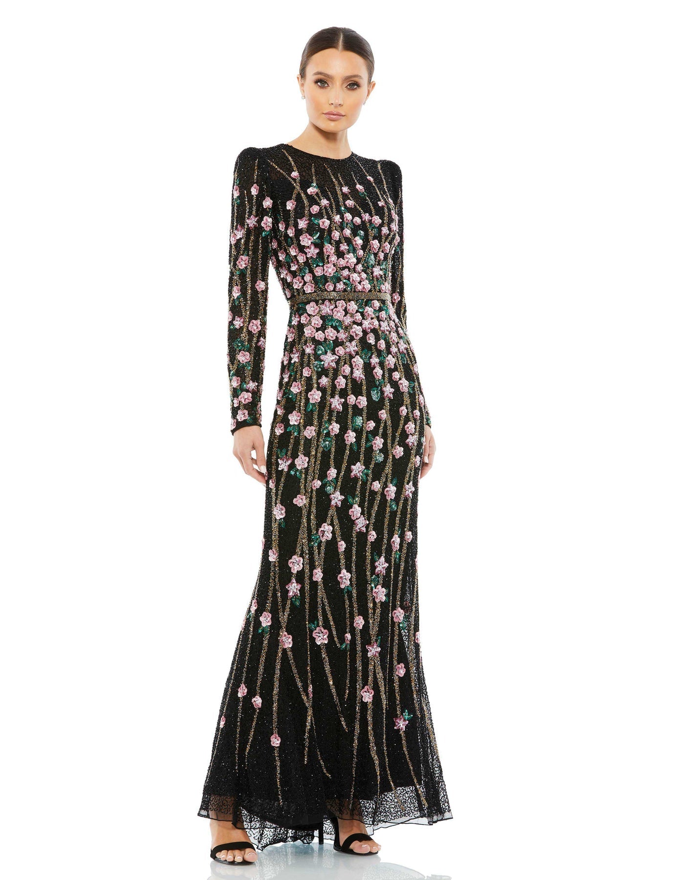 Jewel Accented Waist Line V-Neck Velvet Dress w/ U-Back
