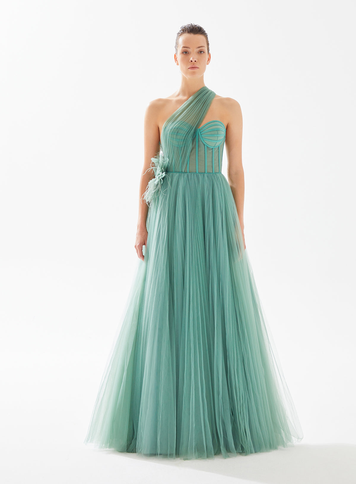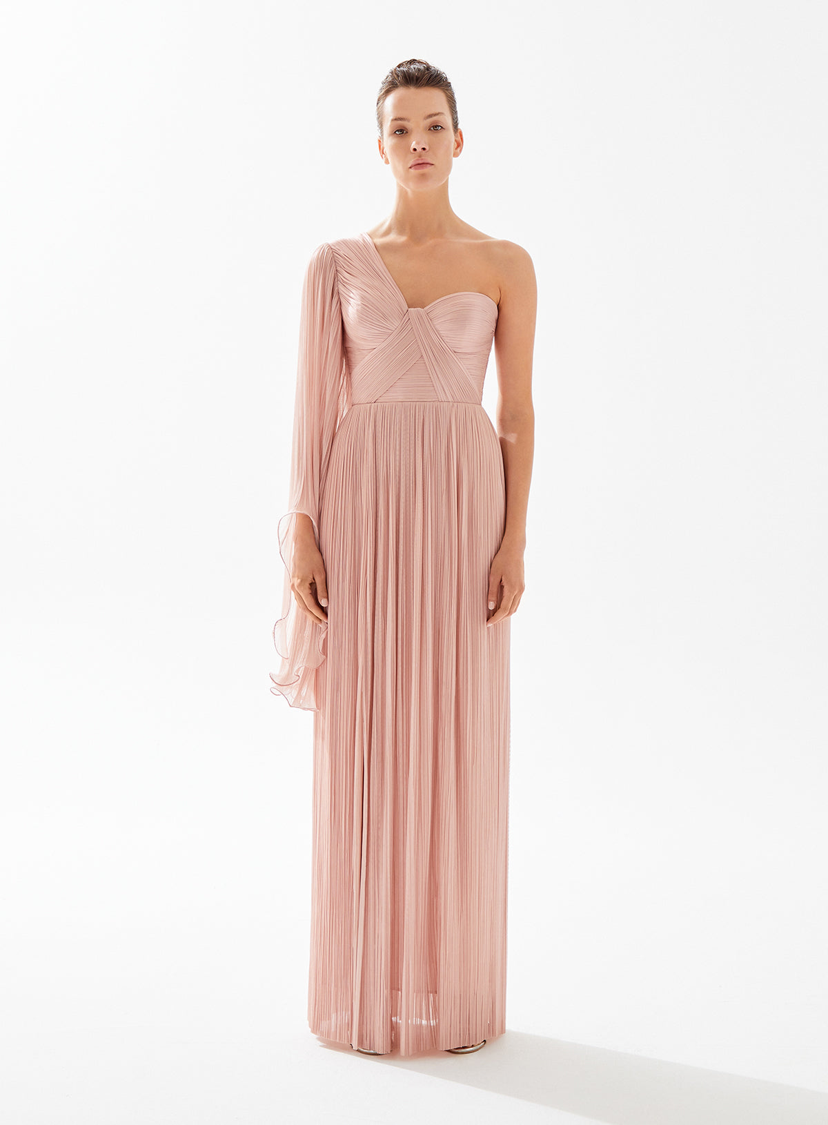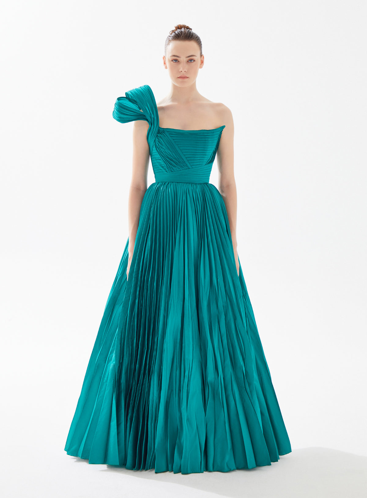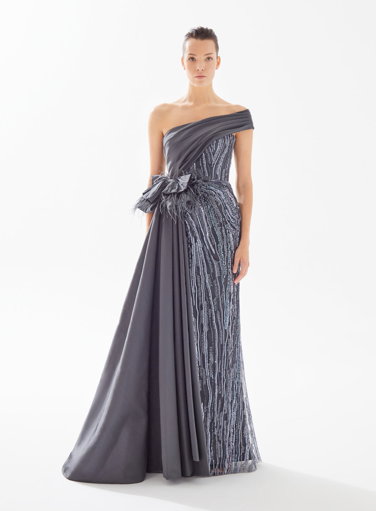 This luxurious metallic chiffon A-line is tasteful and trendy creating a whole lot of buzz around you this Prom 2021. Trimmed with light beading on the straps and front mesh panel, you're guaranteed to shimmer your way through the night.