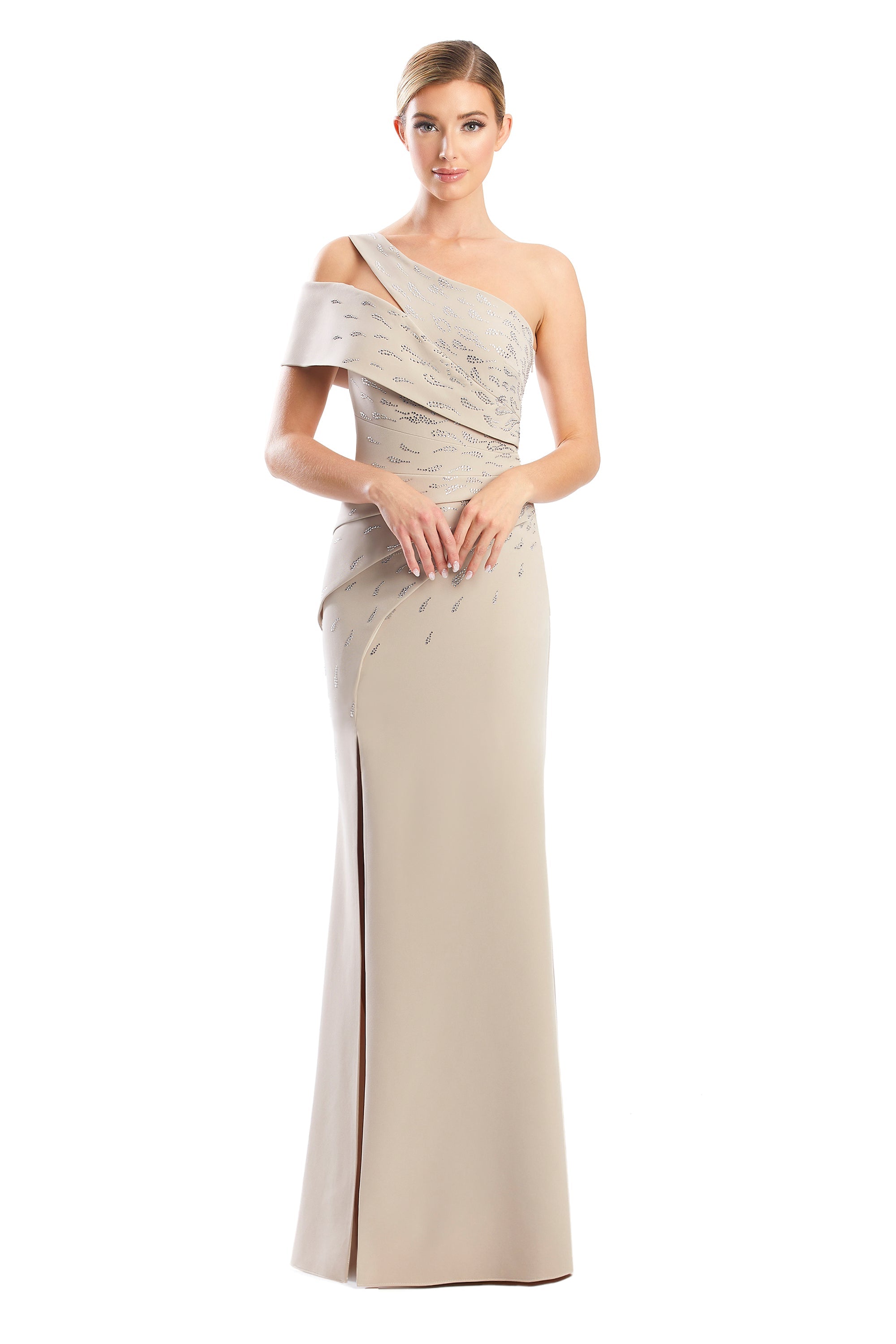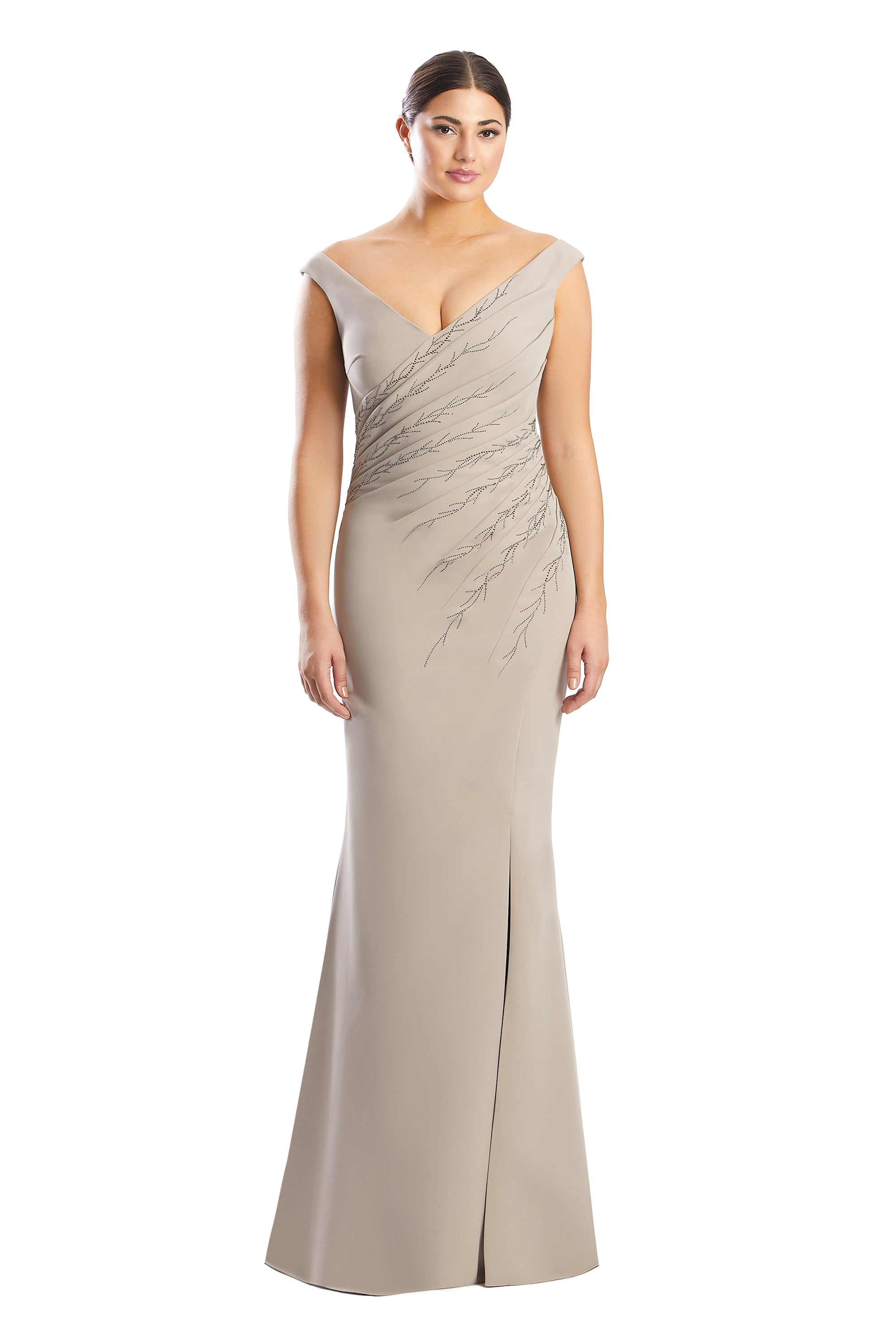 Glitter Crepe A-Line Long Dress w/ Strap Back