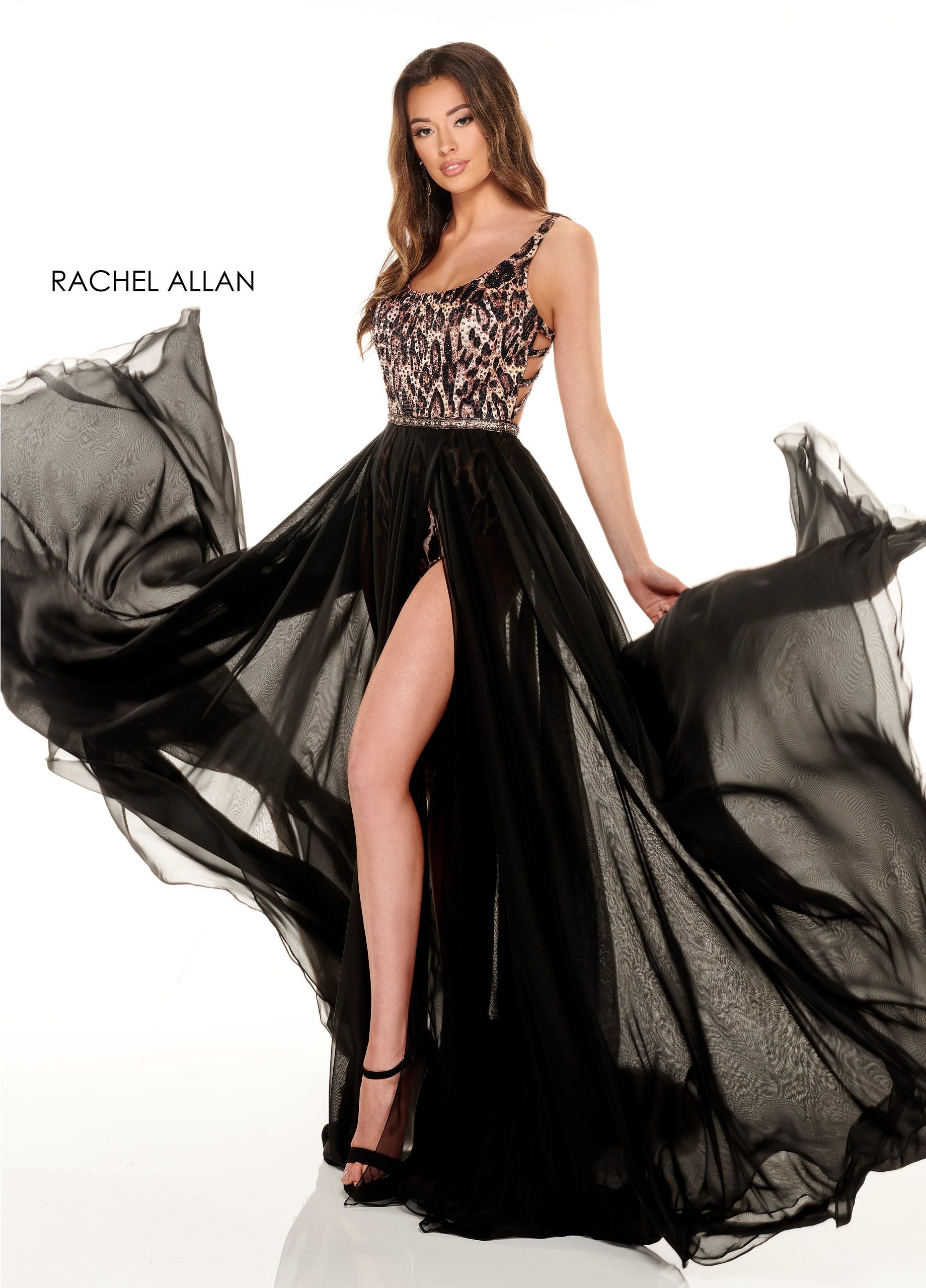 SCOOP NECK BODYSUIT WITH OVERLAY PROM DRESSES IN BLACK COLOR