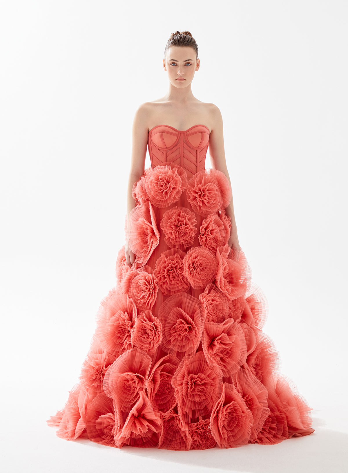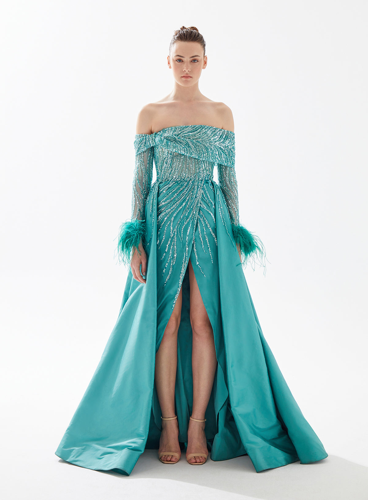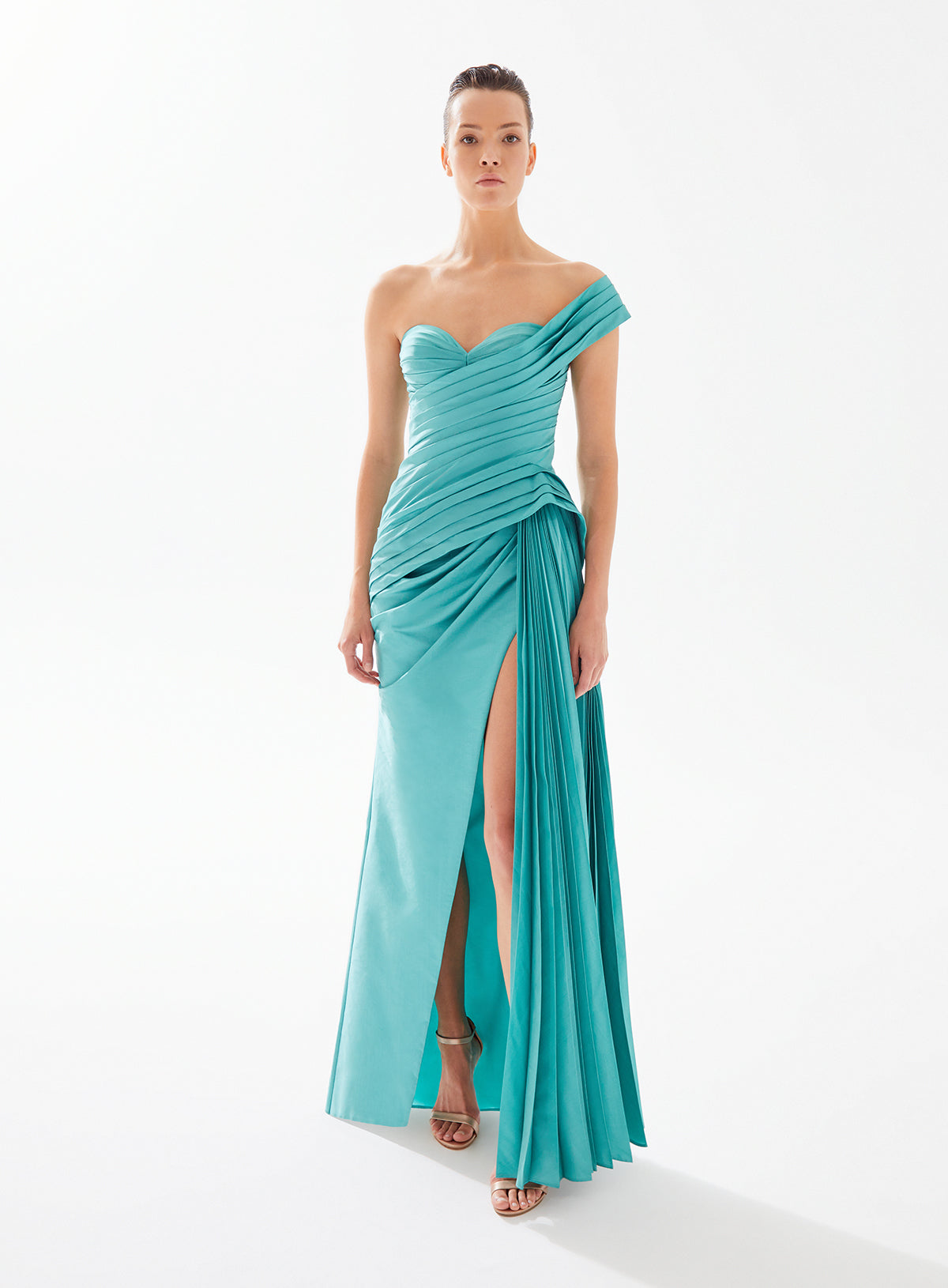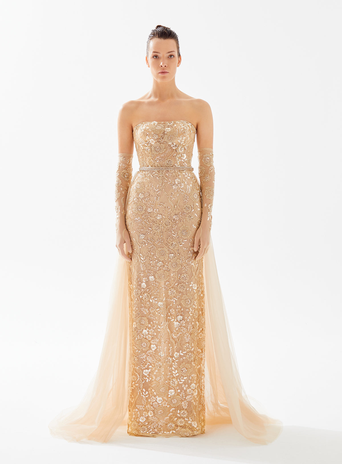 There is something about exposed boning on a bodice that creates an element of sophistication and trend. Walk into the night in this lace/jersey combine made with double straps and a plunging neckline.