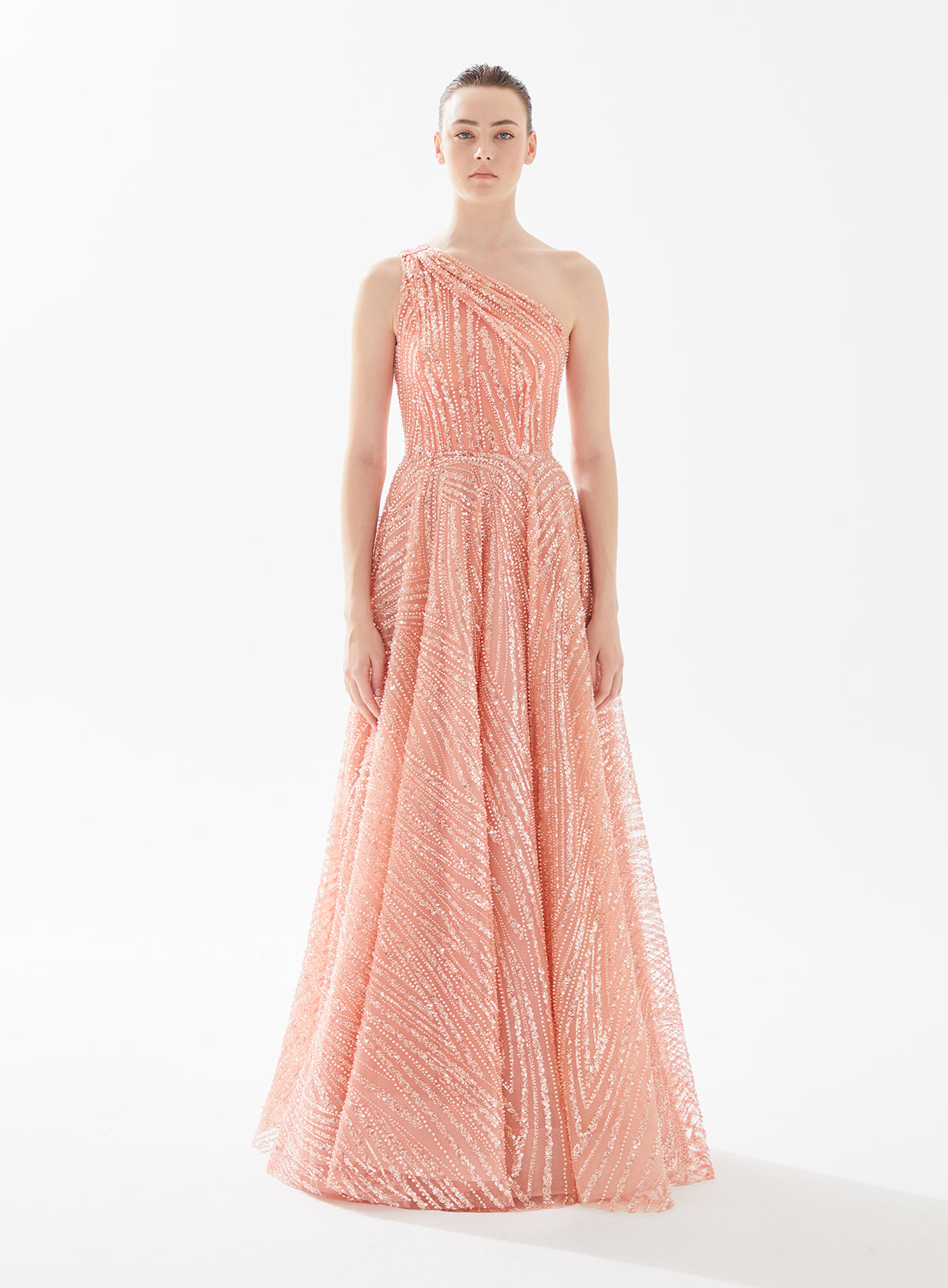 V-NECK FITTED LONG PROM DRESSES IN PINK COLOR