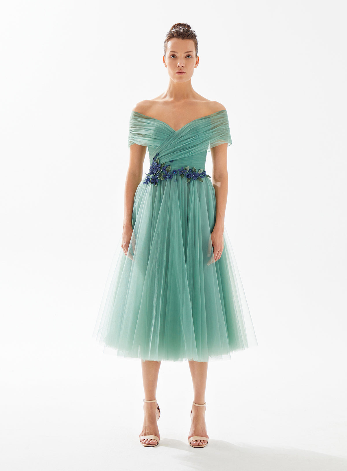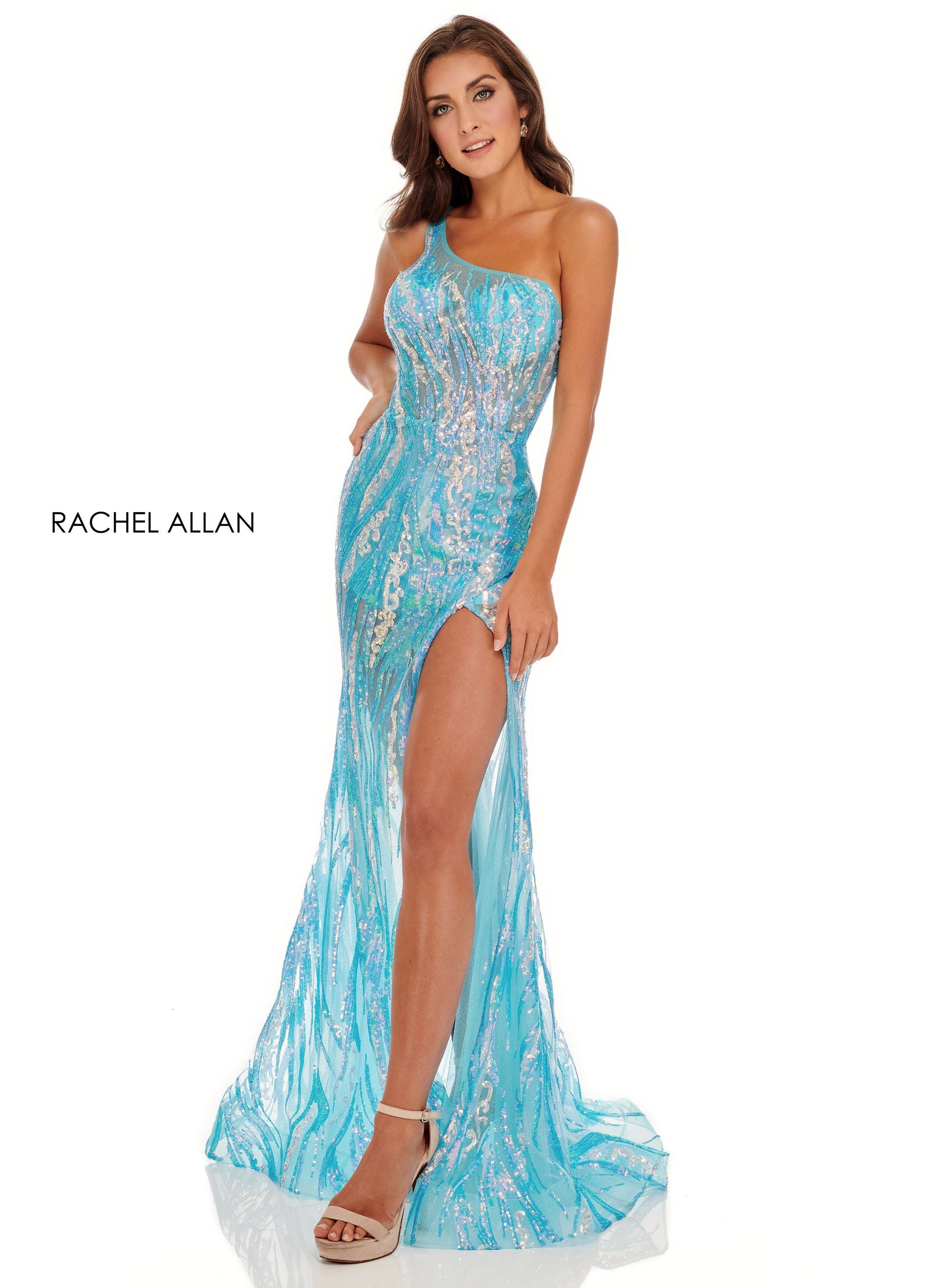 ONE SHOULDER FITTED LONG PROM DRESSES IN TURQUOISE COLOR