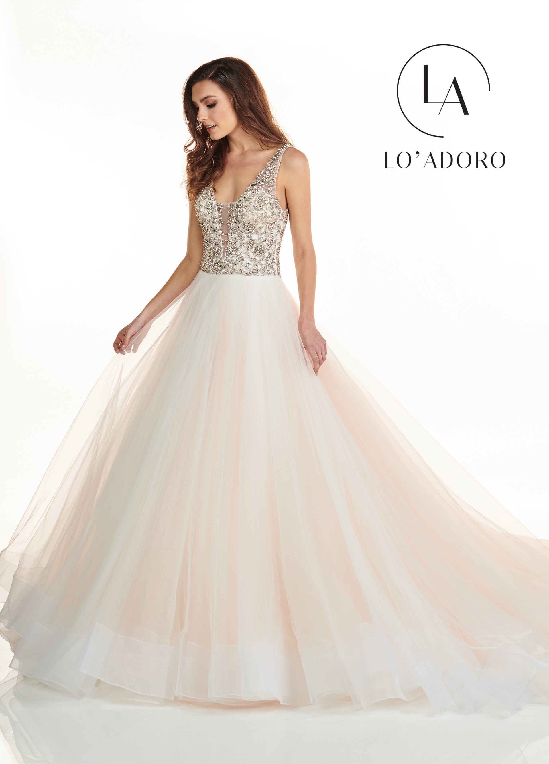 V-NECK FIT & FLARE LO' ADORO BRIDAL IN WHITE COLOR